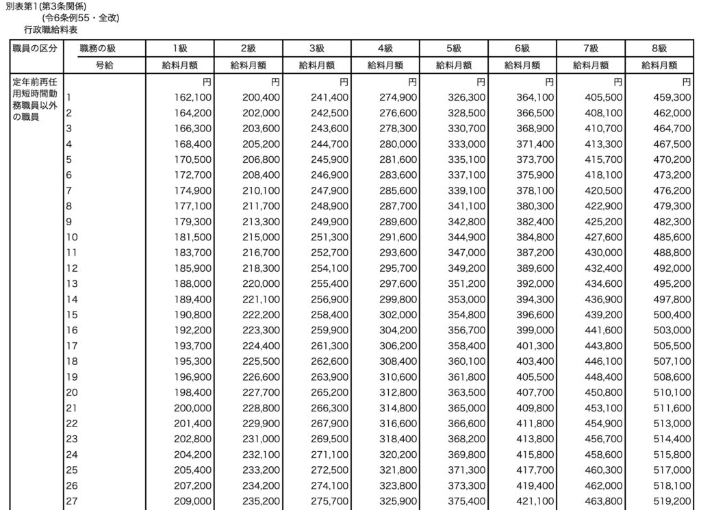 公務員の基本給は「俸給表」という給与体系に基づいて決まります。