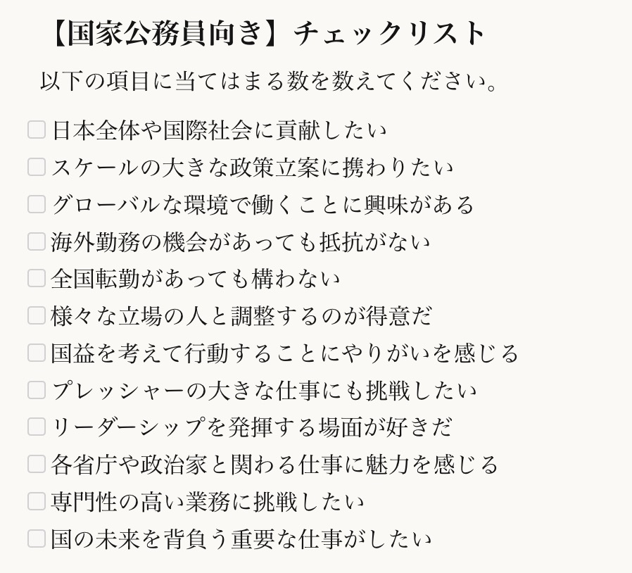 公務員を目指す場合は、この記事で紹介したチェックリストや適性判断のステップを活用して、総合的に自分の適性を見極めることが大切です。